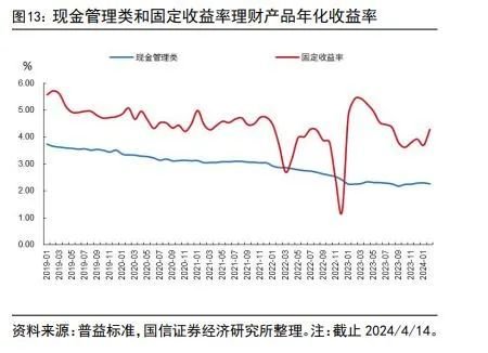 (3)考虑到当前疫情疤痕效应仍存,居民可支配收入增速处在较低水平,未来仍面临较大的不确定性,居民风险偏好理论上也低于2015-2017年,这也反映在当前更高的储蓄意愿上。2023年一季度固收类理财产品收益率大幅提升,但相对应的居民存款持续高增,理财产品规模提升缓慢。因此,我们预计2024年存款利率下调不会带来居民存款大规模流向理财等金融产品。