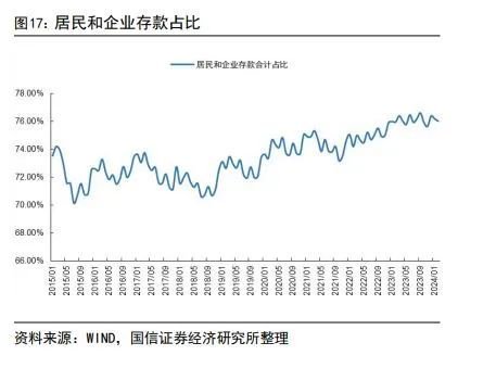 资金成本方面,银行债券配置主要基于“剩余可用资金”理论,资金成本并不是银行配置债券的首要考虑因素。不同类型银行方面,加大对手工补息等高息揽存行为监管对大行存款冲击更大,中小银行存款增速提升更利好信用债,在政府债供给规模较大的情况下,大行存款增速回落或会对利率债带来一定冲击;另外,中小银行债券配置交易盘比重较高,会使得债券市场波动加大。但2024年经济不是强复苏环境,大行信贷投放仍需发力,大行会持续加大揽存力度,预计存款结构扭转的概率很低,因此对债市影响有限。考虑到居民风险偏好仍处在低位,以及借鉴2014-2015年存款利率下降和2020-2021年结构性存款规模下降的历史经验,我们认为实体部门增配理财和债基的现象将延续,但大概率不会出现存款大规模流失的现象。因此,我们认为2024年存款利率下行对债市的利好需要谨慎看待,2017年以来存款利率和债市利率经常出现背离,新利率传导机制下存款利率滞后于资产端利率。