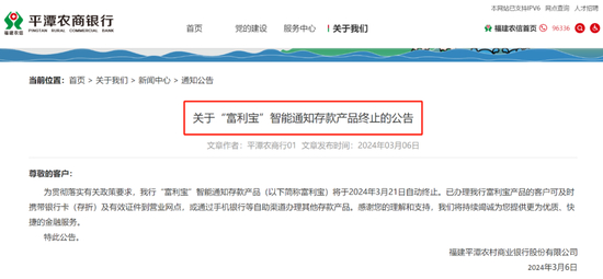值得关注的是,当前调整通知类存款多为区域银行。今年3月份,福建省内的多家银行,例如福建农信社、福州农商行、厦门农商行、连江农商行以及当地多家村镇银行相继发布公告,表示下架“富利宝”智能通知存款产品。