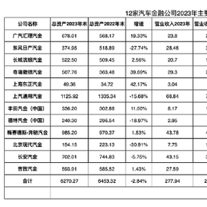 12家汽车金融公司的2023:总资产略降,9家净利润增速为负