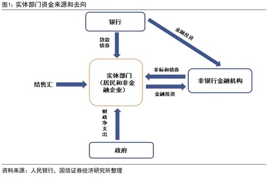 接下来我们将从货币资金来源和资金去向来详细分析企业和居民两大部门的具体行为。分析中我们简单假设居民融资途径仅为银行贷款,其他融资途径都归于企业部门(报告中我们将企业和居民作为实体部门整体分析,因此不考虑企业和居民之间的资金转移行为)。