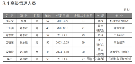 目前,建信信托高管架构为“一正五副”,包括总裁孙庆文,副总裁王业强、周志寰、卫晓东、成海波、吴宁,且6人均来自建行。