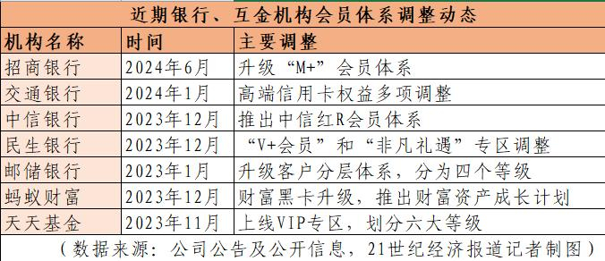 21世纪经济报道记者注意到,除招商银行外,近期多家银行和互联网金融公司均调整了其客户分级体系,更精细的分层和更明确的权益成为了业内趋势。