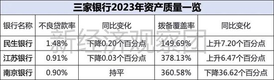 尽管面临挑战,三家银行的资产质量仍然得到了一定改善。2023年,民生银行的不良贷款率为1.48%,相比之前下降了0.2个百分点;江苏银行的不良贷款率为0.91%,相比之前下降了0.03个百分点。两家银行的不良贷款率有所降低,而南京银行的不良贷款率保持稳定,连续两年保持在0.90%。