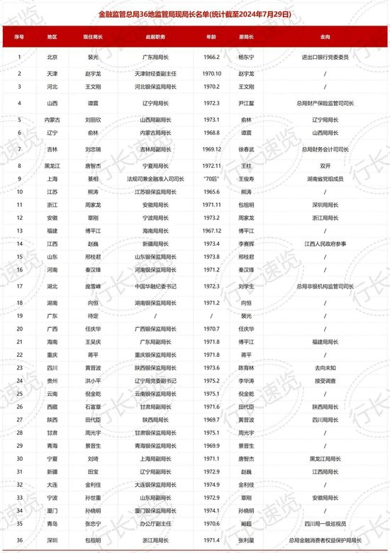 原标题:重磅!新一轮金监总局省级局长换防开启:首位保监系干部执掌北京局,58岁广东局局长裴光履新;70后银监系綦相补位王俊寿掌舵上海局…