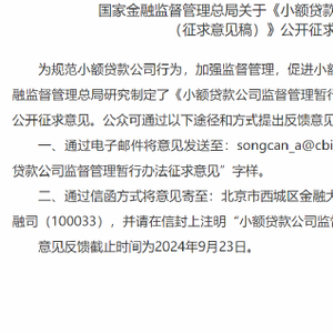 8月23日金融一线消息,国家金融监督管理总局发布关于《小额贷款公司监督管理暂行办法 (征求意见稿)》公开征求意见的公告。