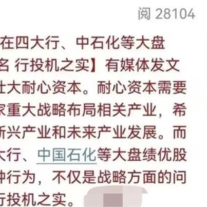 我这么说,并不是我不看好新兴产业、未来产业,相反,我也觉得科创芯片等板块,大有可为,但是,这并不意味着,需要把这些成长板块,和四大行、中石化等,对立起来。