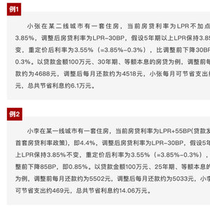 其中,若贷款人房贷为浮动利率定价、且当前利率高于LPR-30BP,其房贷利率将调整为LPR-30BP;而对于当前为固定/基准利率定价的贷款,则需要先主动申请转成浮动利率,然后再进行存量利率调整。