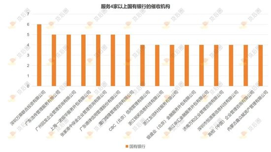 除了图1中的催收“大户”,一些催收公司在国有银行服务榜单上脱颖而出,6家国有大行中至少有4家与其建立了合作。