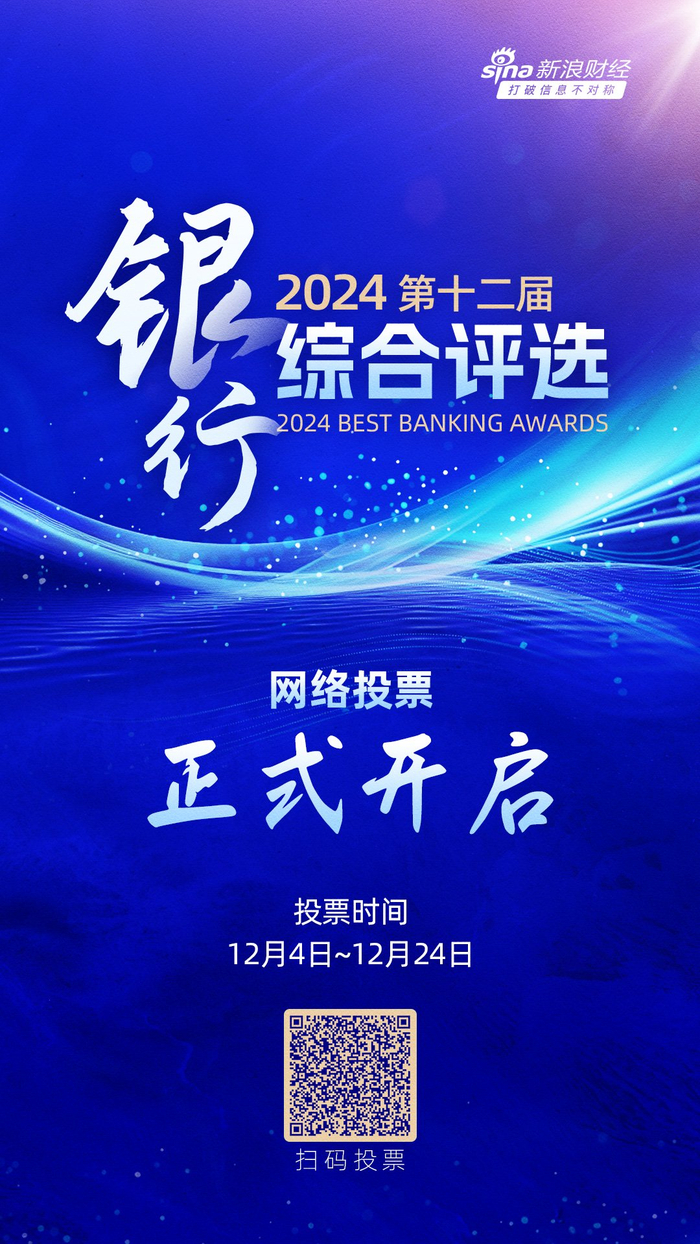 12月4日金融一线消息,新浪财经主办的“2024(第十二届)银行综合评选”活动今日重磅开幕!