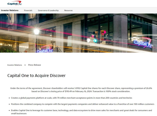 2月20日,美国第一资本(Capital One)公司官网公布,将以全股票交易收购的形式对发现(Discover)金融服务公司进行收购,交易估值353亿美元。该交易预计于2024年底或是2025年初完成。Discover金融服务公司成立于1985年,经过四十年的发展,建立起一个全球支付网络,在200多个国家和地区拥有7000万个商户受理点,同时也是美国除Visa、MC、AE外四大全球支付网络中最小的一家。然而在这场并购大戏中,受到伤害最大的恐怕就是现代信用卡行业的“鼻祖”——大来信用卡,在经历了上世纪八十年代被花旗银行、2008年被Discover两次收购后,即将迎来第三次被出售的命运。