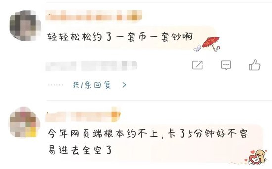 有网友此前评论称,“根本约不上,卡了5分钟好不容易进去全空了”。也有网友表示很轻松就约了一套币和一套钞。