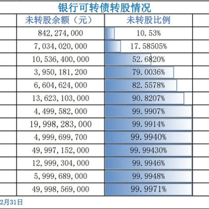 未转股比例超99.99%!超半数银行可转债转股压力大