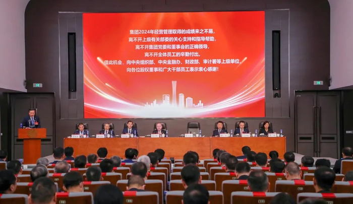 张文武作了题为《防风险 谋改革 推动集团高质量发展》的工作报告。他指出,2024年在集团党委领导下,经营层坚决贯彻落实党中央、国务院决策部署,按照集团工作会议要求和“一个深入、三个推动、五个突破”深化改革总体思路,进一步全面深化改革,扎实推进中央巡视整改,推动经营管理各项工作取得新成效,较好完成了全年目标任务。一是经营业绩向上向好。金融业绩稳中有进,实业发展持续向好,集团主要指标保持增长态势,考核评价和市场价值得到提升。二是认真贯彻落实党中央重大决策部署。体系化推进金融“五篇大文章”,高质量服务共建“一带一路”,落实中央一揽子增量政策、国务院新“国九条”等取得扎实成效。三是推进重点领域进一步深化改革。发布集团进一步全面深化改革任务书,统筹推动重点领域改革;实施总部职能改革,进一步清晰部门职责、提升管理效能;持续深化瘦身健体,有序推进内部整合重组,推动主责主业更加聚焦,业务布局不断优化。四是完善风险管理体系,重点领域和重大项目风险化解持续推进。推动房地产、政府融资平台等重点领域风险持续收敛,超额完成协同化险年度目标,妥善处置重大风险项目,有效防范声誉风险。进一步压实风险管理责任,健全风险问责体系,释放“失责必问,问责必严”信号。五是加大科技创新和数字化转型力度。“管理上云”横向覆盖和纵向穿透成效显著,“应用绽放”打造多个示范应用,集团在创新成果转化、“卡脖子”技术突破、重大科技项目攻关等方面取得一系列成果、获得一批荣誉。