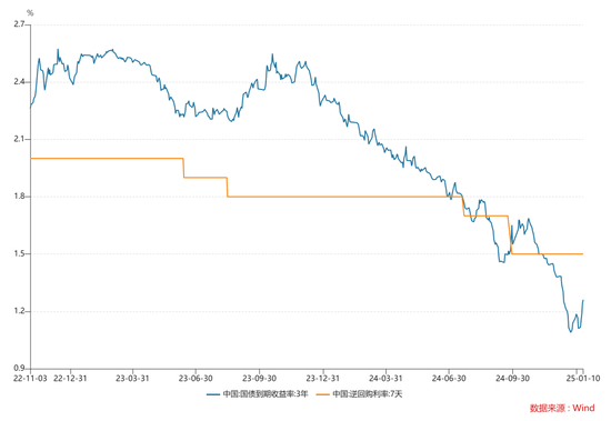 同时,1月10日,央行公告:鉴于近期政府债券市场持续供不应求,中国人民银行决定,2025年1月起暂停开展公开市场国债买入操作,后续将视国债市场供求状况择机恢复。