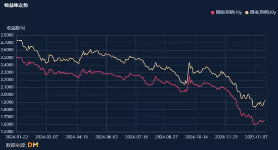 另一方面,中国国债利率也逐步稳住,截至1月20日收盘,10年期国债利率已经升至1.65%左右的位置,30年国债也上行至1.9%左右。