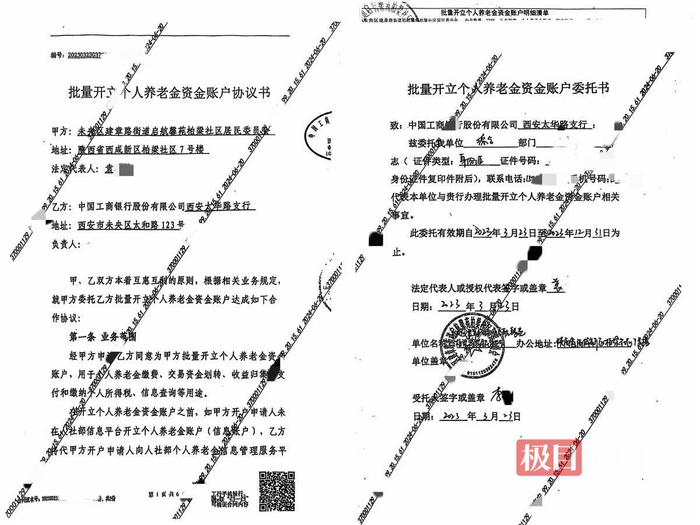 近日,极目新闻记者在涉事社区走访时,社区居委会工作人员对上述《协议书》内容存疑,并称社区工作人员在不知情、未授权的情况下也被开通了个人养老金账户,有人举报后,账户又突然消失了。涉事银行暂未作出最新回应。