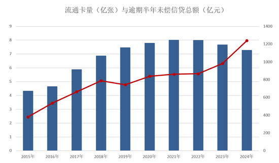 *(原文)信用卡逾期半年未偿信贷总额指信用卡未足额归还最低还款额,且逾期期限为181 天(含)以上的未清偿本金余额,不包含已核销金额。