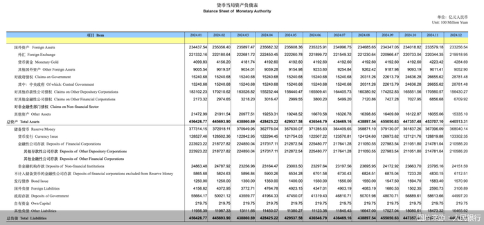 另一方面,在2024年中,MLF作为主要政策利率的地位逐渐被淡化。2024年下半年以来, MLF连续净回笼,余额从7万亿元降至4万亿元;人民银行通过新创设的买断式逆回购补充中长期流动性,但该项工具不入表,成为了导致分项下行的主要原因。此外,人民银行自2024年8月开始买入国债,但这一操作纳入对政府债权,而非对其他存款性公司债权。