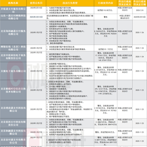 另外,开联通支付服务有限公司、网银在线(北京)科技有限公司、北京中投科信电子商务有限责任公司等多家公司被罚没超百万元。