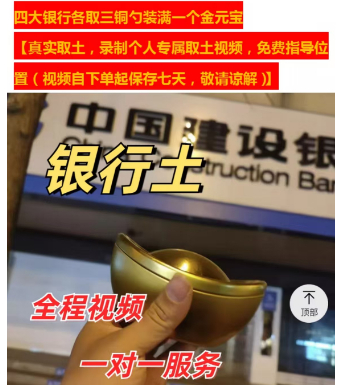 银行土取自银行门口花圃或银行大堂里发财树花盆。商品详情中,有商家描述称该商品是在五大银行各取三铜勺的土,装在一个金元宝里,同步提供个人专属取土视频。商家宣称,银行为聚财之地,该商品能够发挥中国传统五行中土生金的作用,为顾客带来催财生财的效果。