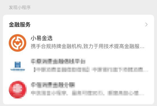 近日,贝多财经注意到,在微信小程序的“金融服务”推荐页面中,一款名为“小易金选”的小程序出现频率相当高。