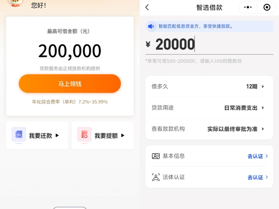 据“蓝鲸新闻”报道,易借速贷的最高贷款额度为20万元,但要获得最低年化24%利率的贷款,必须花费398元购买平台内部发售的“金尊卡”;若用户不充值,贷款利率将直接升至接近35%。