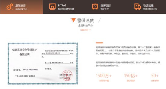 根据霖梓控股官网披露的资料,易借速贷现已是霖梓控股旗下的唯一一个从事金融业务的信贷服务品牌,目前注册用户亦超1500万,累计放款150亿元,并拥有50余名合作伙伴。