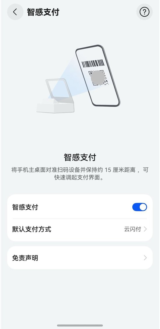 ● 智感支付,快人一步:用户只需提前进入设置>辅助功能>智慧感知>智感支付,根据页面提示开启智感支付开关并设置默认支付方式。之后无需打开云闪付App,手机亮屏即可直接对准扫码设备完成支付,简化操作流程,支付更方便;