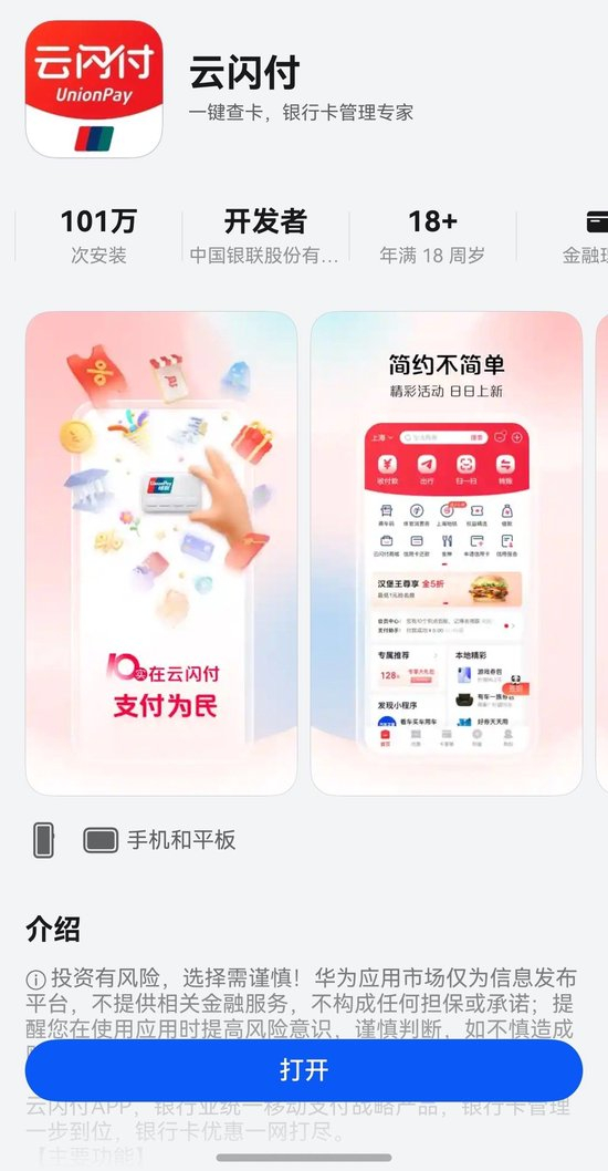 鸿蒙原生版云闪付下载量破百万 一个App即可绑定近2000家银行卡