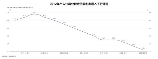 公积金利率自2012年进入下行周期,从4.9%累计降息205个基点,2024年5月下调至2.85%。