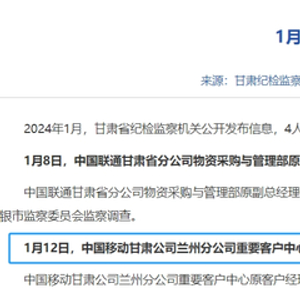 去年1月,甘肃纪委通报中国移动甘肃公司兰州分公司重要客户中心原客户经理崔某接受监察调查。