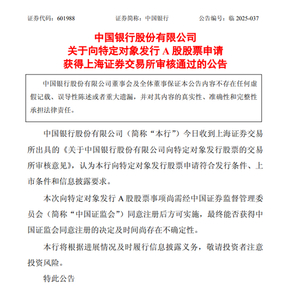 中行、交行、邮储银行公告:向特定对象发行A股股票的申请通过!