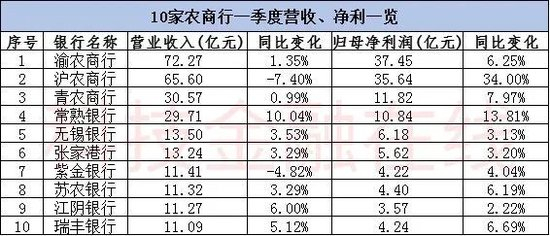 相比之下,10家农商行业绩分化程度最小。一季度,10家A股上市农商行中,有8家营收同比实现正增长,2家出现负增长;而在净利方面,10家A股上市农商行更是全部实现了同比正增长,而且其中有部分银行如沪农商行,归母净利润增速高达34%,在42家上市行中遥遥领先。