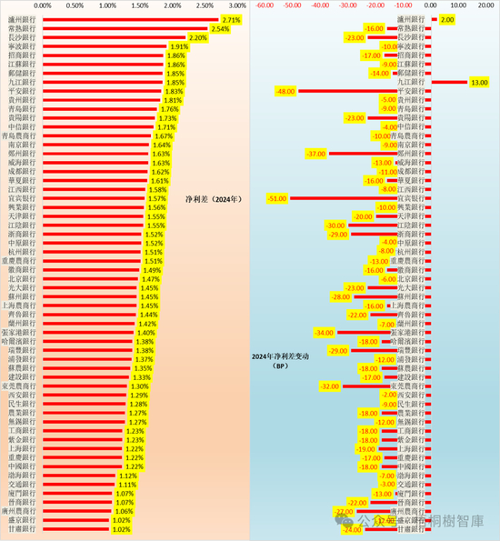 截至目前,除九台农商行延迟发布2024年财报外,其余58家上市银行均已经发布2024年财报,本文聚焦上市银行息差空间变动情况。