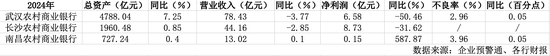 在营收方面,2024年,武汉农商行和长沙农商行营业收入分别为78.43、44.16亿元,较上年同期分别下降了3.77%、2.85%;净利方面,2024年,武汉农商行和长沙农商行分别实现净利润6.58亿元、8.73亿元,较上年同期分别下降了50.46%和31.62%。2024年,南昌农商行虽然实现营业收入0.15亿元,与上年同期在低位持平,但是该行近三年的净利润则出现较大波动。年报显示,该行2022至2024年分别实现净利润0.24亿元、0.02亿元和0.15亿元。