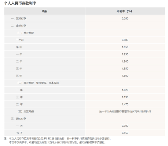 在同一天调整存款挂牌利率的还有宁波银行。《金融时报》记者注意到,自5月26日起,宁波银行将一年期、二年期、三年期、五年期整存整取定存利率分别调整为1.25%、1.30%、1.55%、1.60%。从调整后的利率水平来看,宁波银行较上述两家城商行具有明显优势。