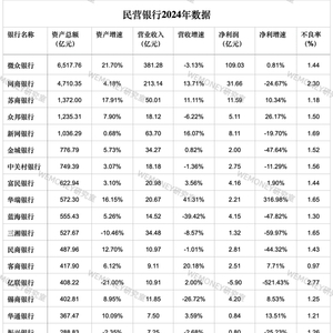 尤其是随着金融竞争的加剧和监管政策的收紧,民营银行的生存环境愈发艰难。部分民营银行因业务结构单一、负债渠道窄等问题,导致盈利能力减弱。同时,不良贷款余额的增加和不良贷款率的上升,也进一步压缩了民营银行的利润空间。