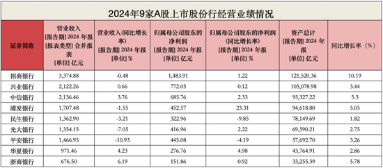 2024年,9家股份行仍然保持“对公走强,零售趋弱”的格局。