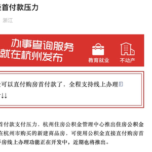 例如,杭州缴存职工在杭州市购买的新建商品房,可使用公积金直接支付购房首付款,二手房线上办理功能正在开发中。