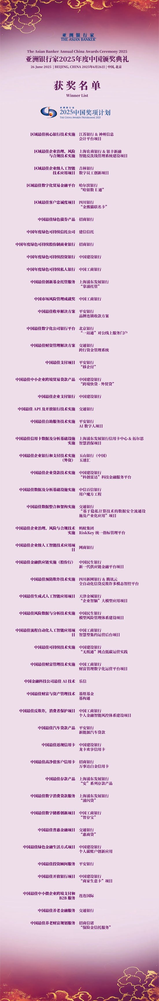 亚洲银行家2025中国颁奖典礼在京成功举办 完整获奖名单出炉