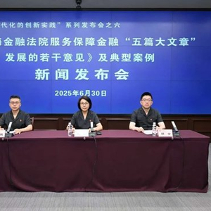 为全面贯彻落实习近平法治思想,以高水平金融司法服务金融“五篇大文章”高质量发展,助力发展新质生产力,支撑上海国际金融中心能级提升,保障金融强国建设,今天(6月30日)上午,上海金融法院举行新闻发布会,发布《上海金融法院服务保障金融“五篇大文章”发展的若干意见》(以下简称“《若干意见》”)及服务保障金融“五篇大文章”典型案例(以下简称“典型案例”)。上海金融法院党组书记、院长赵红通报《若干意见》相关情况和主要内容,党组成员、副院长顾全发布典型案例,党组成员、政治部主任、新闻发言人田骏主持发布会。
