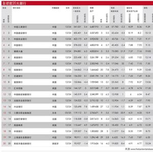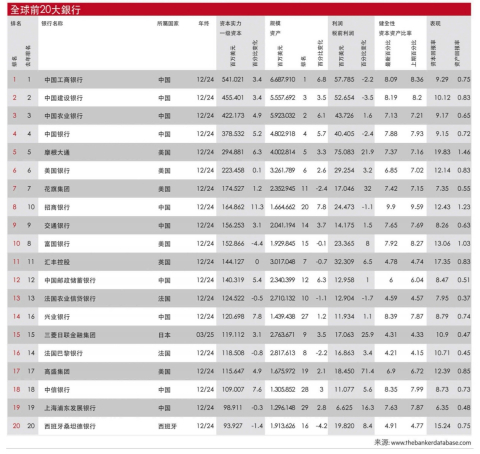 其排名主要考量的银行一级资本,是衡量银行资本充足状况的重要指标,反映银行抗风险和利润增长能力,是全球银行综合实力的标尺。