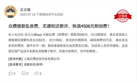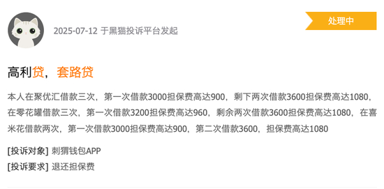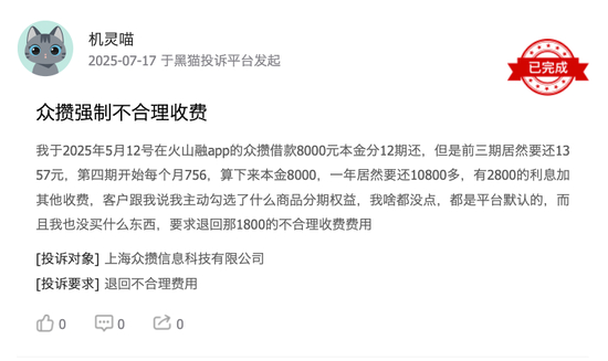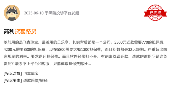 在中介的引导下,王芳最后在一家小平台上成功申请到8000元。当时看到有额度,王芳如获至宝,并未细看,赶紧提出来还了其他平台的逾期。但她很快发现,这家平台的实际利率非常高,前三还款均高达1357元,高出实际应还金额多达600元,客服表示其中包括了权益费用,而她本身并不知情。柒财经查询发现,类似的案例,在黑猫投诉上非常常见。