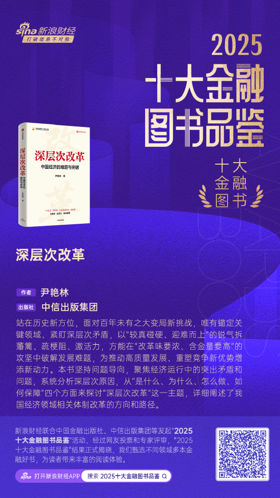 2月5日金融一线消息,经过近两个月的激烈角逐和专家评审,新浪财经联合中国金融出版社、中信出版集团等发起的“2025十大金融图书品鉴”活动结果正式揭晓。尹艳林所著《深层次改革》获评2025十大金融图书。