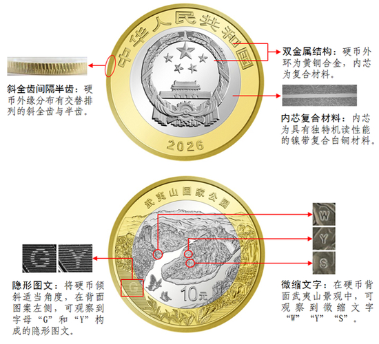 武夷山国家公园双色铜合金纪念币防伪特征整体效果示意图
