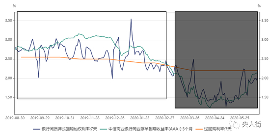 银行资产负债表可以看出,今年上半年银行“以量补价”,大量投放信贷,央行则通过再贷款贴现、OMO、MLF以及准备金分别从银行的负债方和资产方对银行扩张资产负债表行为进行支撑。一旦央行支持力度减弱、结构性存款的压降,则NCD的净融资必须增加,以保证信贷投放的资金需要。数据显示,连续5周净融资为负后,本周NCD的净融资规模为268.6亿元,转为正值。利率方面,5月份城商行6个月NCD票面利率平均在1.6-1.8%左右,已经快速上行至近日的2.5-3%左右,接近100BP的上行幅度。