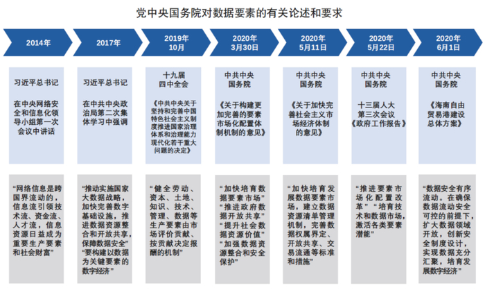 党的十九届四中全会首次将数据作为生产要素写入中央文件。今年上半年,中共中央国务院相继发布《关于构建更加完善的要素市场化配置体制机制的意见》及《关于新时代加快完善社会主义市场经济体制的意见》,其中均提出了加快培育数据要素市场的具体意见。近年来,我国数字经济发展迅速,中国信息通信产业研究院发布的《中国数字经济发展与就业白皮书(2019年)》显示,2018年总量达31.3万亿元,占GDP比重超过三分之一,对GDP增长的贡献率则超过三分之二。新冠肺炎疫情暴发以来,信息技术在保障“非接触式”生产生活、提升需求供给匹配效率、增强社会服务与管理等方面更是发挥了巨大作用。数据作为数字经济和信息技术时代的“石油”,其重要性日益凸显。金融业作为数据密集型行业,在数据要素新时代将主要承担两大任务:一是树立行业示范,既推动金融业实现高质量发展,又为国家探索数据要素化路径提供最佳实践经验;二是为国家建设全新的数据要素市场提供全方位的、开创性的金融支持服务。