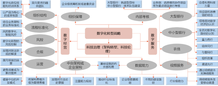 结合《发展规划》《指导意见》的要求,本文对银行系统性开展数字化转型提出若干建议,其关系如下如所示(见图4)。