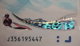 穿越冬奥塑料钞的时空之窗,一座座肉眼可见的山峦,精致的纹理呈现出大幅度的动态效果,分明的层次呈现出绿水青山的生动画面。票面倾斜,红绿相间的重山叠嶂变成满目的金山银山。其厚重雄浑,来自于《千里江山图》的启发;其深远寓意,来自于“绿水青山就是金山银山”的发展理念;其视效之美,则来自于中国印钞技术的飞跃发展。